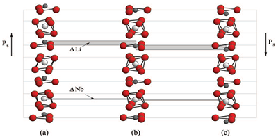 由于結(jié)構(gòu)內(nèi)的不對稱性,壓電效應(yīng)存在于某些晶體中。例如,在3所示的鈮酸鋰(LiNbO 3)晶格中,鋰和鈮離子從氧八面體的中心移位。